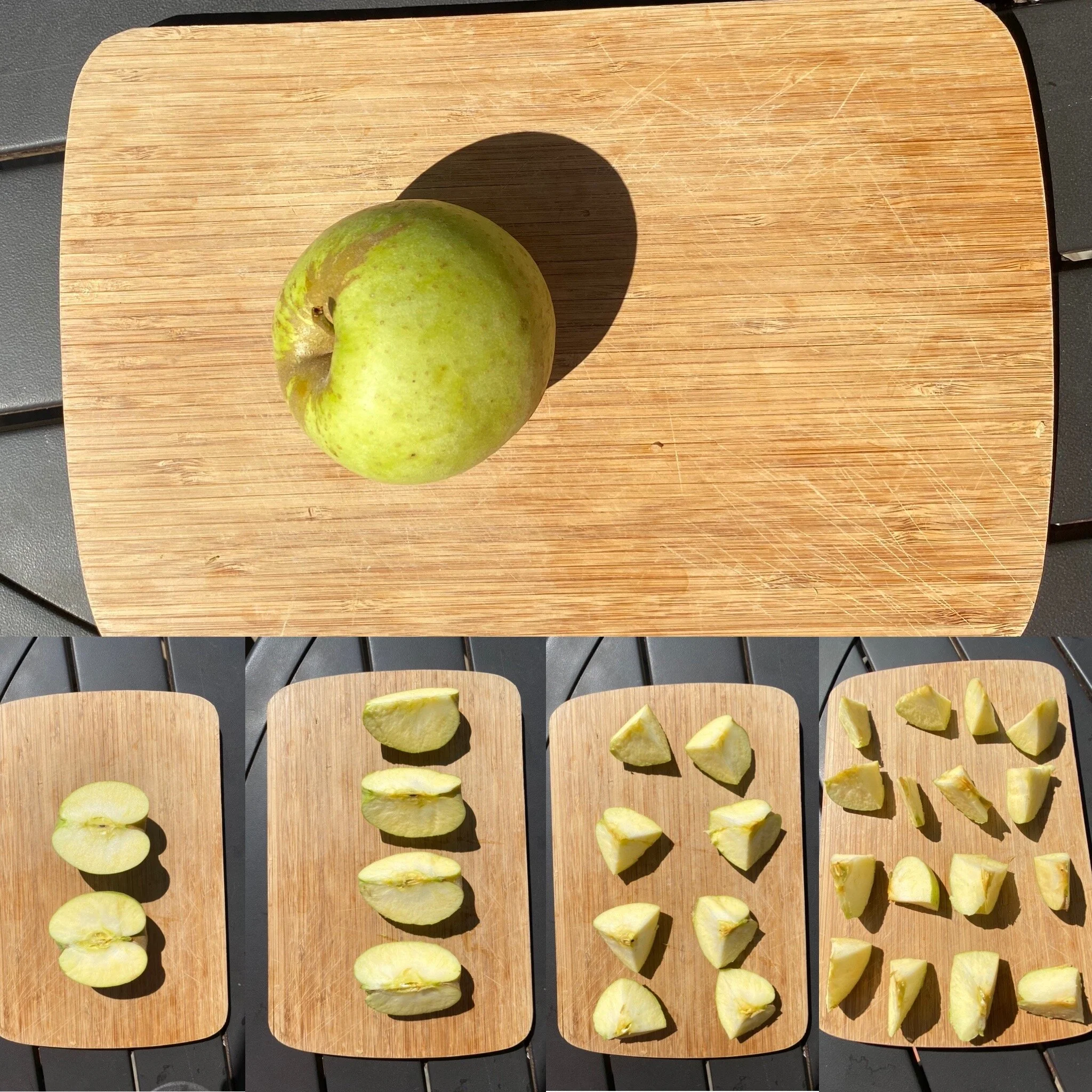 Apples are a delicious and healthy way to learn about fractions. Start with 1 whole apple and use child-safe knives so each child can cut their own apple into fractions. It’s fun to ask a child to eat a certain fraction of the apple!