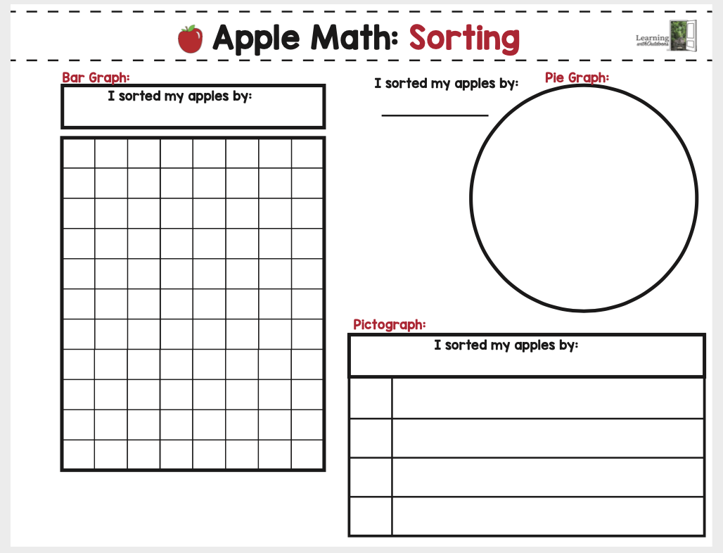 Apples are a tasty tool to help learn about sorting, graphing, counting, and fractions!