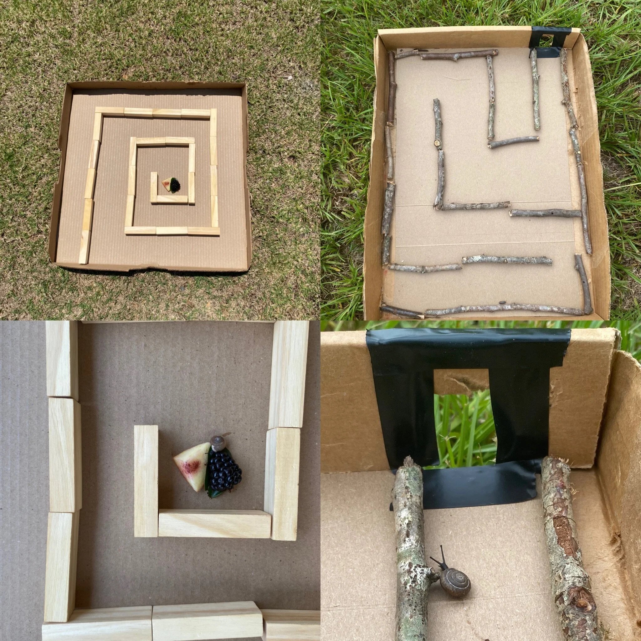 Children will problem solve as they observe and can make changes to the initial maze, modifying it to reflect their observations-creating taller walls, making the sticks or blocks closer together, increasing or decreasing the width of the exit or adding more or less obstacles.