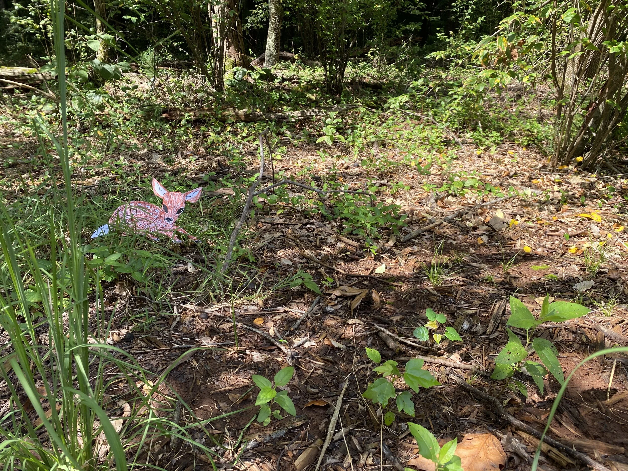 Color the fawn a reddish brown color and add white spots with crayon, paint dabber or Q-tip and paint. Find a space outside where your fawn will be protected and lay it in the grass. Challenge a friend to find it.