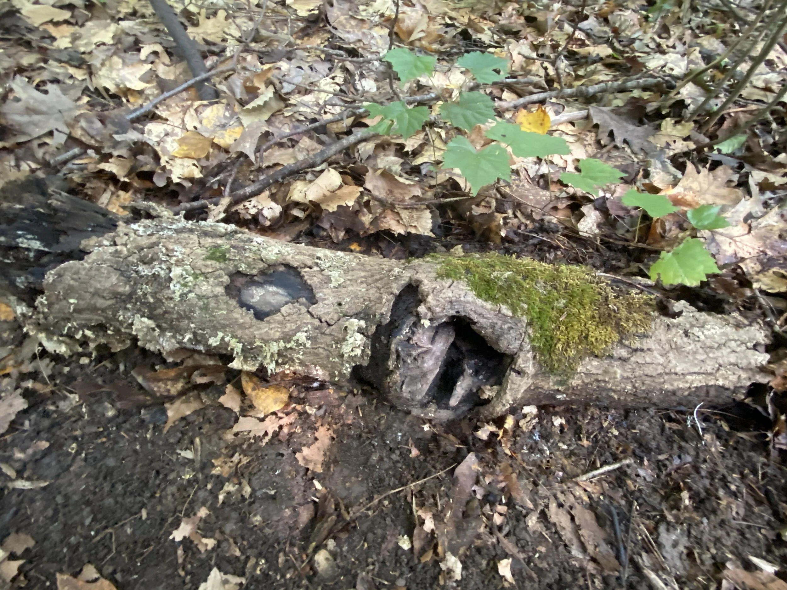 Find a log that has fallen onto the ground.
