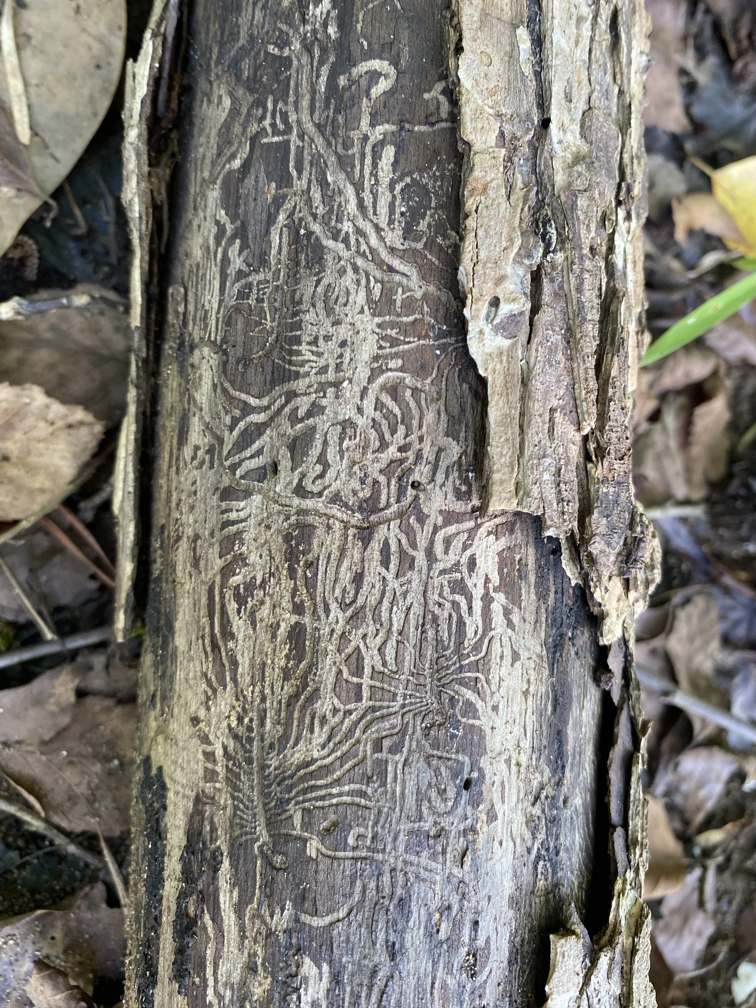 4. Take a close look at the area exposed on the underside of the log!